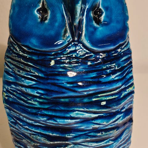 Svært sjelden keramisk statue i form av 3 ugler, ecru-farget keramikk (mellom hvit og brun) med en fantastisk crackle glasur. Le Dauphin er kjent for å produsere utsøkte luksuslamper og også noen dekorative ornamenter som nå er ekstremt sjeldne å finne. Flott stand.