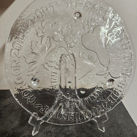 Vintage Ostefat / Serveringsfat fra Pukeberg Glassverk, Sverige. Håndlaget. Design Eva Englund. Hun jobbet der i årene 1964-1973, så fatet er nok fra den tiden.