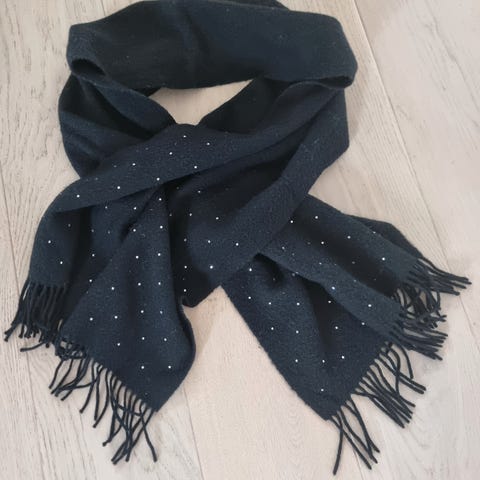 #marineblått #skjerf #stola 4 pelspuskervi hvert sitt hjørne . Kryssene er #diamanter . Bredde 65 cm x 2 m