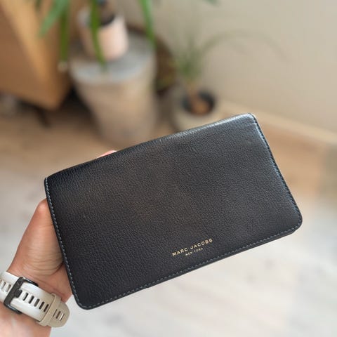 Flott og lite brukt lommebok fra Adax i skinn selges. Den har mange lommer til kort, lomme med glidelås for mynter, og den har god plass til sedler og kvitteringer m.m. Også lomme med glidelås på baksiden. Sendes mot porto eller hentes i Halden.