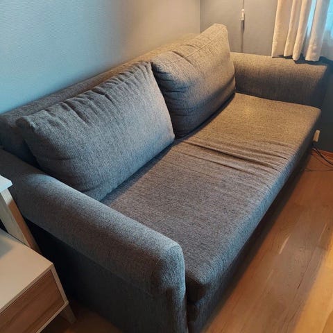 Pent brukt sovesofa med skuff til sengetøy og ekstra overmadrass. B= 175, D=92. Oppslått L =200 og b=140 cm. Selges for kr. 500.
