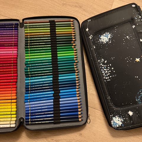 Sett med 500 blyanter i unike farger, fra japanske Felissimo selges. Fargene er nummerert og sortert kronologisk i pleksiglass spesielt tilpasset blyantene. Blyantene er ubrukt. Flere bilder kan sendes hvis ønskelig.