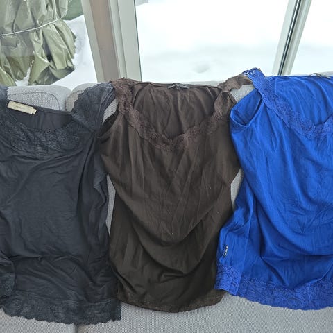 Singletter som passer str. L og XL (42-44). Sju stykker.