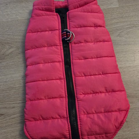 Dekken til hund selges. Dette er et tynt bobledekken som festes under med knapper. Brukt noen ganger. Det er vasket men blitt litt misfarget under, selges derfor billig. Str XS ca 19cm (målt på ryggen, uten hetta). Må hentes i Åsgårdstrand eller sendes mot at kjøper betaler frakt.
