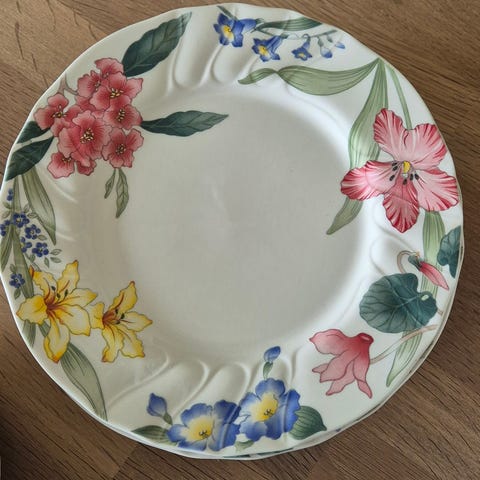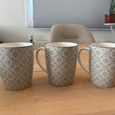 Nesten ubrukte krus fra Villeroy & Boch med «vinterrose» strikkemønster.