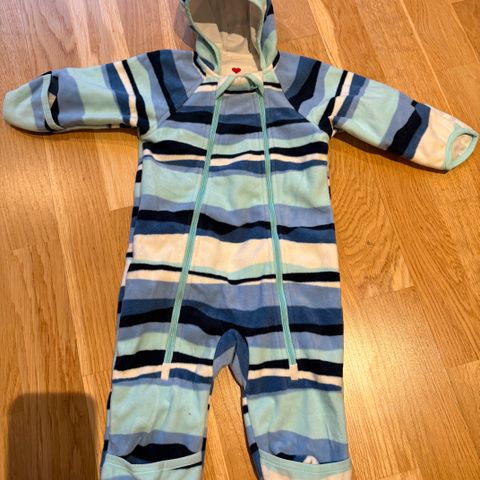 Verdens beste fleecedress fra Lindberg, med avtagbar hette. Kjøpt til tvillinger for bruk ved bæring/ute. dessverre kun brukt en gang da de lå mest i vogn på det tidspunktet. Ikke synlig brukt.