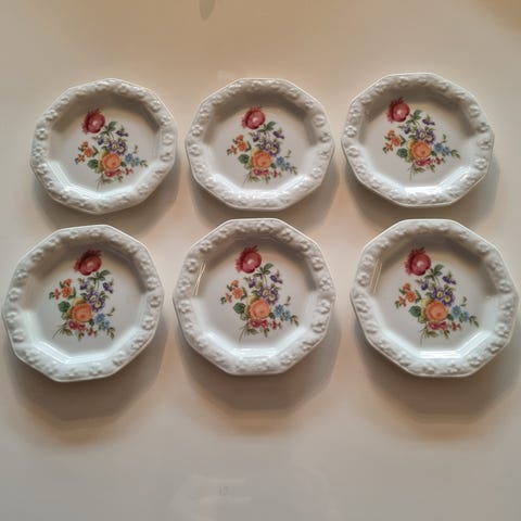Selger 2 stk asjetter i Rosenthal Maria rosemønstret servise dia 17 cm. Hele, meget pene, ingen skader. Fremstår nær som nye. Pris kr 50,- pr stk. Hentes i Oslo eller sendes etter avtale.