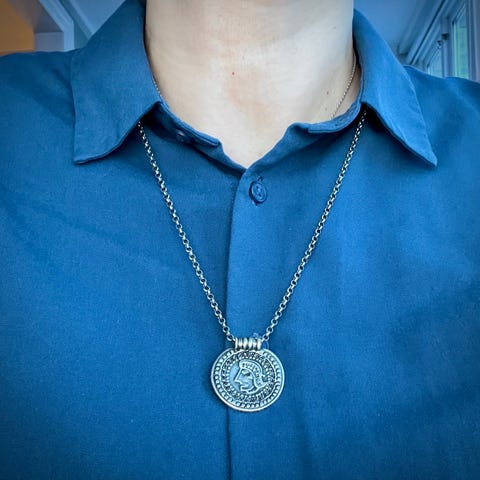 Bilde 3 og 4: pris per anheng er 150kr. Disse festes 3 steder på halskjedet