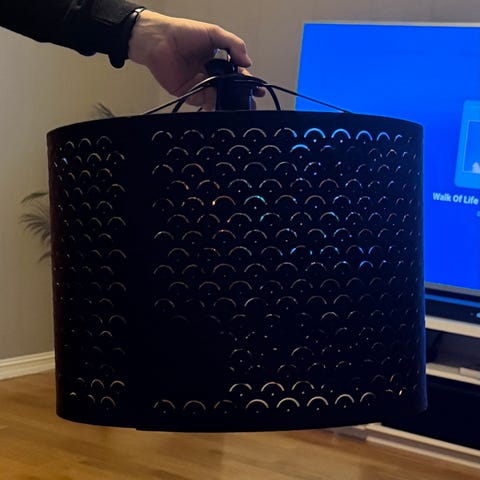 Stilig taklampe med stor, dekorativ Led-lyspære fra Ikea.