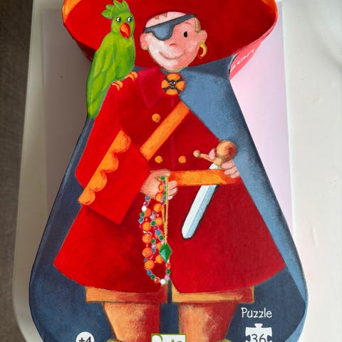 2. Puslespill i papp med 24 ekstra store brikker. Tøft Kaptein Sabeltann motiv! Nesten ny 150 butikk pris er 329.