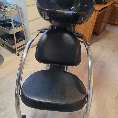 Har to frisørstoler med vask til salgs. Stolene er pene i trekket, og fremstår av god kvalitet.
