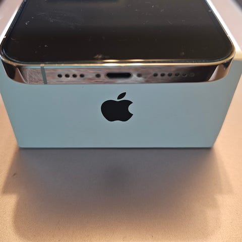 IPhone 13 pro Max selges billig da ladekabelen ikke fungerer. Lades helt fint med bordlader/trådløs ladestasjon.