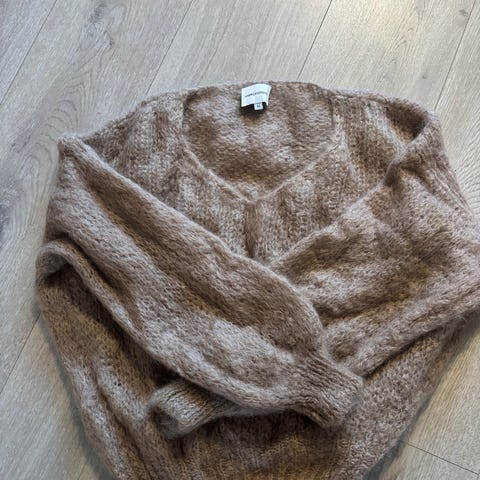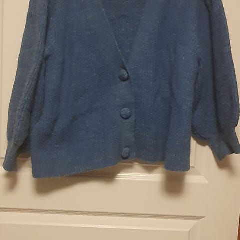 Strikkegenser med noe «ballong-armer». Hvit, men noe misfarget i vask og noe nupper☺️