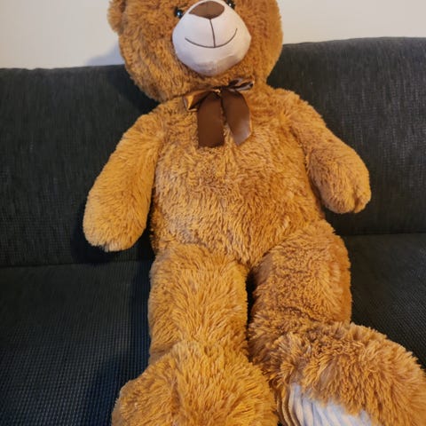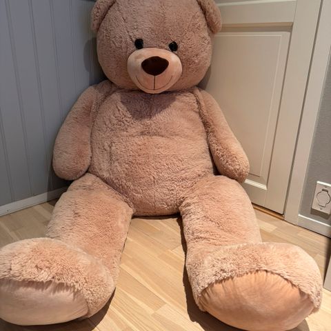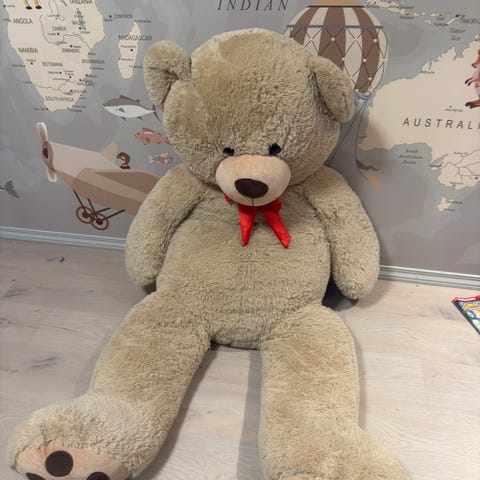 Megastor bamse selges pga plassmangel. Kun stått til pynt en kort periode. Bamsen fremstår som ny uten flekker og slitasje. Fin bursdagsgave, dåpsgave eller annen gave 😀 Bamsen er ca 115 cm høy 🐻