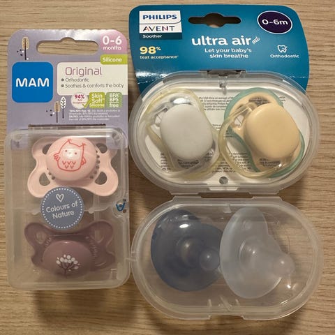 Selger en uåpnet pakke med smokker. 0-6 mnd.