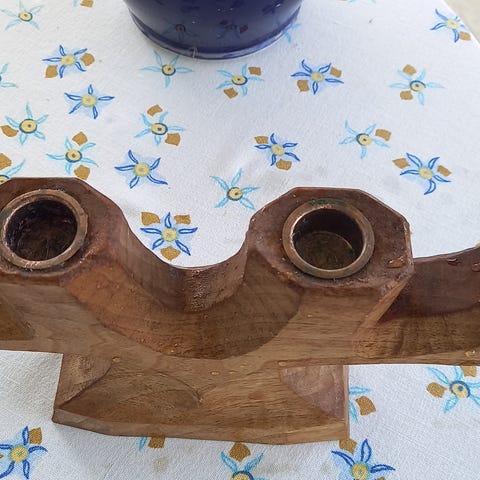 Et par nydelige håndmalte lysestaker fra Bavaria selges samlet. Dessverre noen nag, men ikke noe man legger merke til om man ikke ser etter. Kan sendes for 69kr.