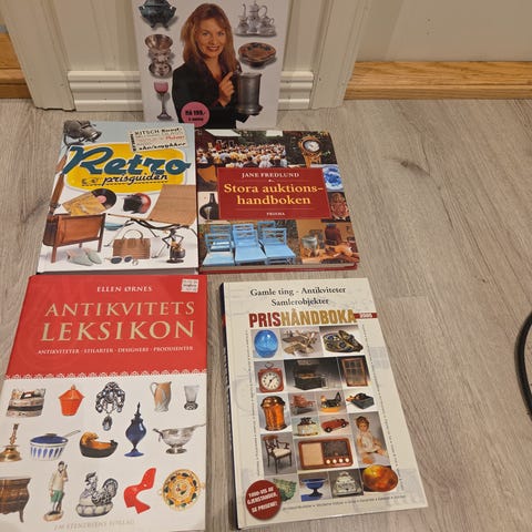 Selger 4 bøker samlet om antikviteter og samleobjekter for kr 175 + porto