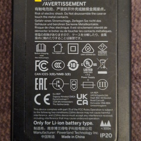 Husk å sjekk at sparkesykkelen eller sykkelen får riktig volt.