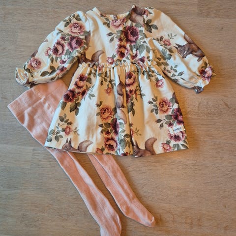 Selger den nydeligste kjolen fra Newbie i størrelse 62 og en strømpebukse fra Newbie i 62/68. Kjolen er ubrukt og strømpebuksen er kun brukt 1 gang❤️
