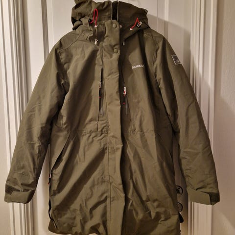 Sjeldent brukt «helle parka» Didriksons. 100% waterproof og vind tett. Skikkelig varm og god for kalde høst/vinter/ vårdager med snø og regn. Fra dyr og røykfri hjem. Selger på grunn av at jeg eier for mange klær. Nypris 2400,-