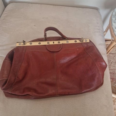 Gammel jordmorveske i skinn.