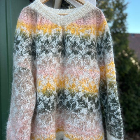 Midlertidig utsolgt, men hekler gjerne nytt på forespørsel! Stort sjal, skjerf heklet i englemasker, kjærlighetsknuter i garn av 10% ull og 90% akryl selges. Har heklede sjal i mange ulike garn typer og farger. Kan sendes mot at kjøper betaler porto.
