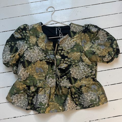 Nydelig bluse med fint mønster, korte ermer og søte krager.