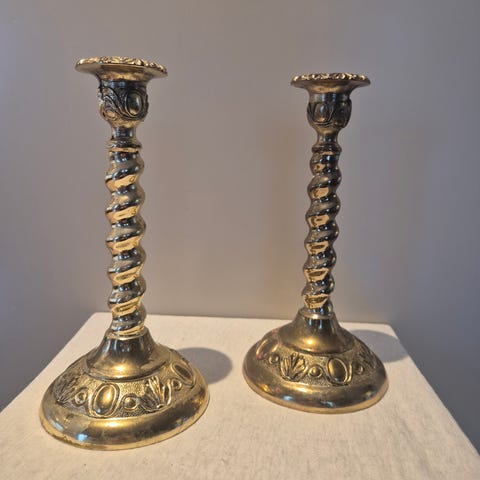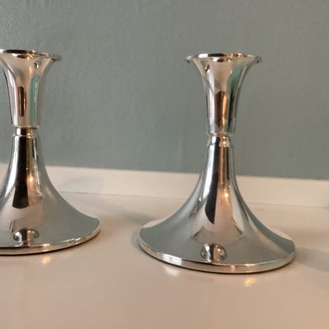Lysestaker sølv farge med inskripjon S.P.ZINC ENGLAND, høyde24cm,bredde 30cm. ser bra ut naturlig.