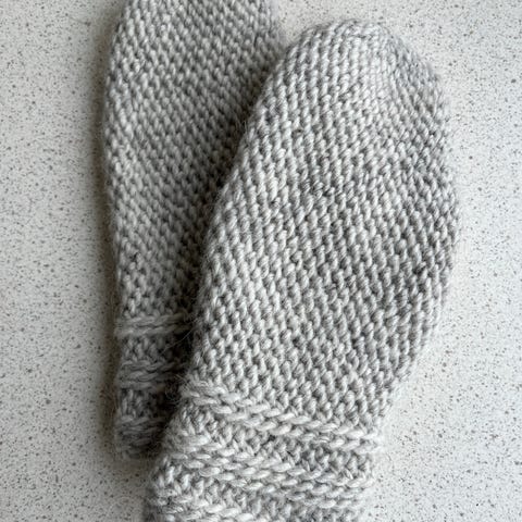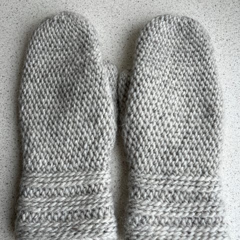 De er lagd i garn som egner seg godt for toving, så om du vil at vottene skal være mindre /tettere kan du tove dem for hånd til du blir fornøyd!