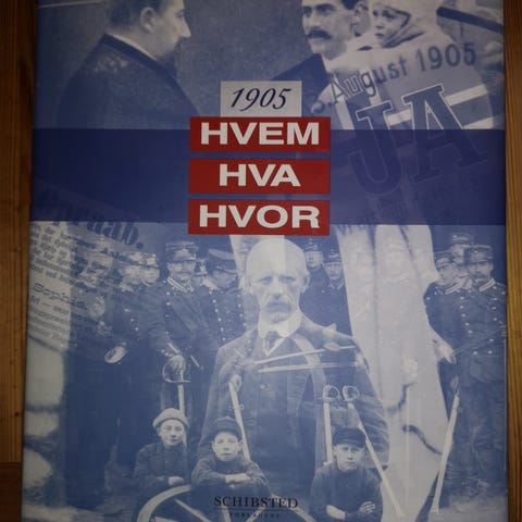 1 stor, tung og meget flott bok «1905 HVEM HVA HVOR». Boken er NY, har kun ligget på lager (i 20 år). Høyde 28,5 cm, Bredde 23 cm, veier 1350 gram. Boken har 256 sider. Schibsted Forlagene 2004. Boken har mange fotografier.