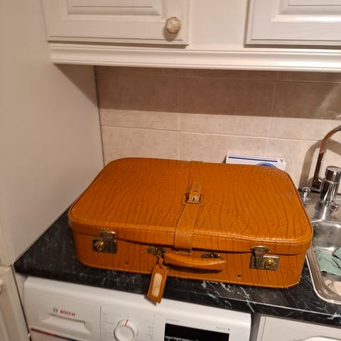 Unik gammel picnikkoffert selges. Usikker på alder. Tror den er helt ubrukt.