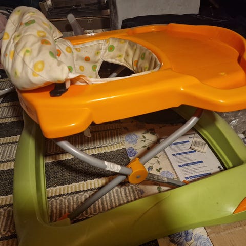 Genial og fantastisk gåstol selges. Den er i massiv tre. Håndtaket kan justeres og det er bremser på hjulene som gjør at man kan tilpasse farten. Når barnet begynner å utforske kan bremsene stå inne slik at gåstolen så vidt triller, også kan man åpne opp etterhvert. Denne har vi vært så fornøyd med. Begge barna våre ha lært å gå tidlig med denne.