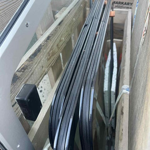 Skrog, konsol, seter, targabøyle og servostyring. Det må byttes pontonger , da luften siger ut i løpet av kort tid. Det er prøvd med lapping inn-og utvendig, men det er små hull i skjøtene.