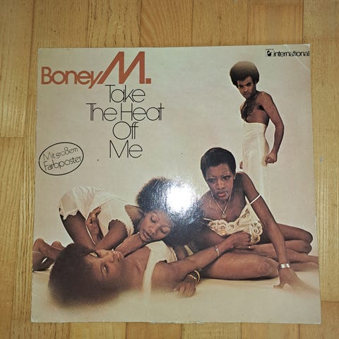 Kan ha enkelte små sår etter prislapper o.l. En og annen microbulk kan forekomme. Utbrettscoverne kan være skjeve i ryggen etter å hatt det for trangt i platehylla. Diskret navnetrekk kan forekomme. Kan ha lettere kantslitasje hvis den ikke har stått i plastcover, skjønt "ryggen" skal fortsatt være hel og lesbar uten nevneverdige skader. Spander derfor et plastcover på skiver du er litt glad i. Disse kan du få kjøpt av meg for 5,- kroner stk. 😃