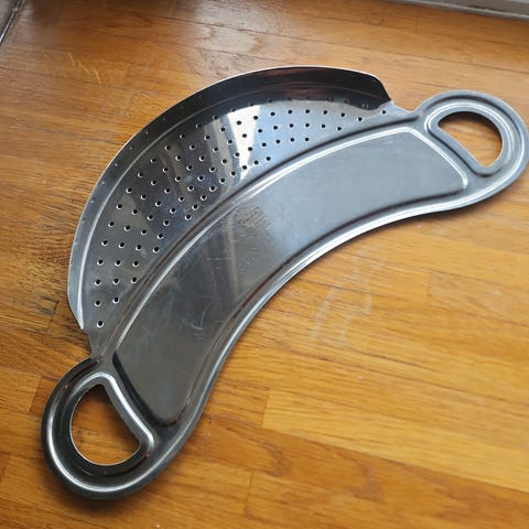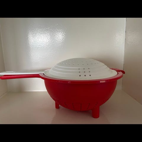 Sil i oransje hard plast med håndtak og stoppere i underkant til kasserollekanten. Rask og enkel håndtering, perfekt siling av pastavann/grønnsaksvann uten å måtte ta innholdet ut av kasserollen. Total lengde med håndtak 33,5cm. Mål selve sil: 23,5x 12cm
