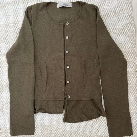 Beige Bitte Kay Rand ulljakke i 100 % ull selges. Str er S. Modellen har påsydde skinnlapper på armene. Jakken har ikke slitasje i halsen eller fremme på armene. Den er ikke mye brukt.