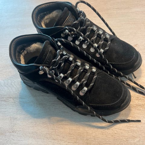 Håndlagde sko kjøpt på Mallorca, såler av gamle bildekk. Str. 38, de er merket 39, som er mitt nummer, men de er for små for meg. Mykt fint skinn.