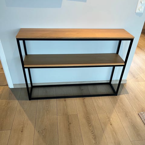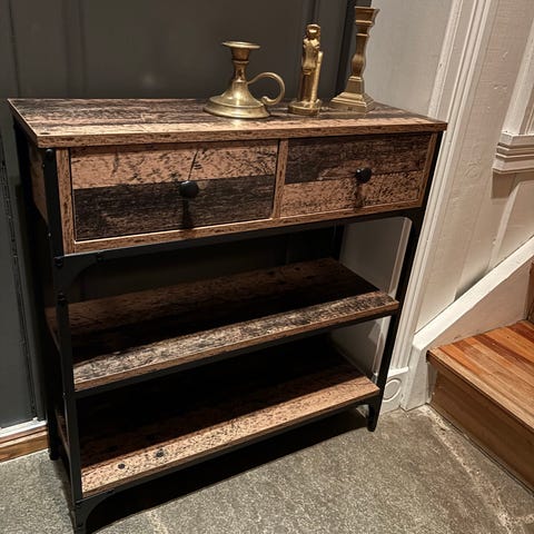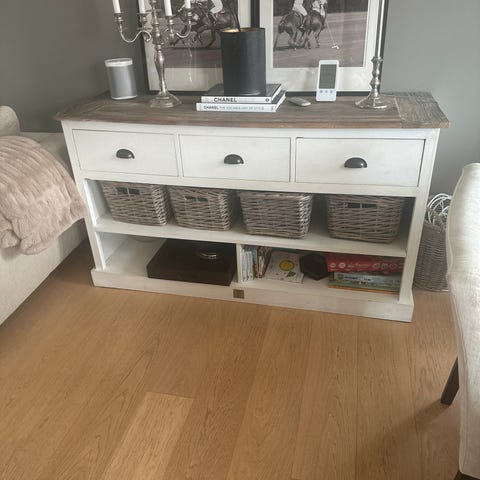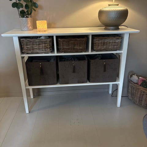 Pent brukt skjenk/konsollbord med 3 skuffer og hylle nederst.