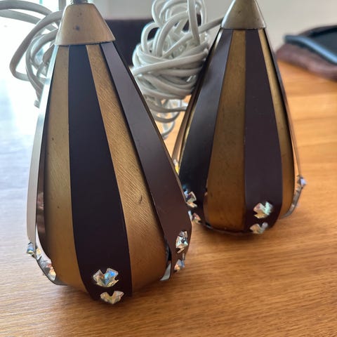 Eldre taklampe i messing. Fremstår pen/ god stand).