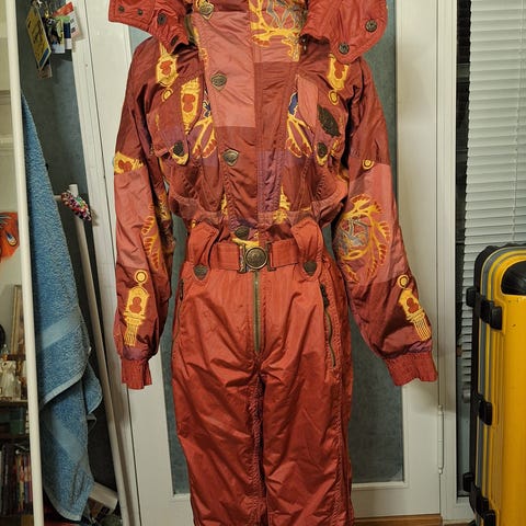 Stilig vintage skidress selges da den er blitt for liten. Kule detaljer, perfekt til afterski. Bunnen kan passe til en liten L.