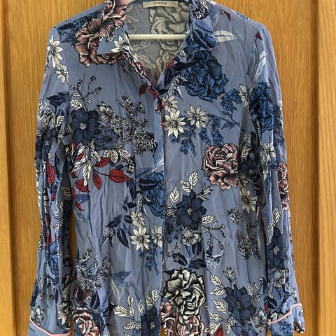 Søtt og elegant sett fra NoaNoa. Skjørtet er i størrelse xs, og blazeren/ jakken er i størrelse S. Settet er pent brukt, men selges da det dessverre er for lite til meg. Stoffet er vattert med pent mønster, det er pent brukt, men en gammel modell.:)