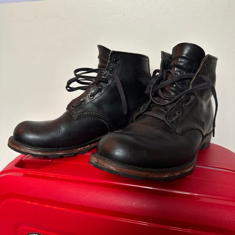 Red Wing Silversmith Copper rough & tough leather i størrelse 37.5/4.5 US kjøpt hos Red Wing Amsterdam til salgs da de dessverre var litt for små. Denne modellen har lengre skaft og er litt mer elegant enn klassikeren Iron Ranger. Skoene er pent brukt og original skoeske med skoposer følger med. Nypris er 4600 hos Skomakermester Våge. Veldig fine og gode boots som blir bedre med årene!