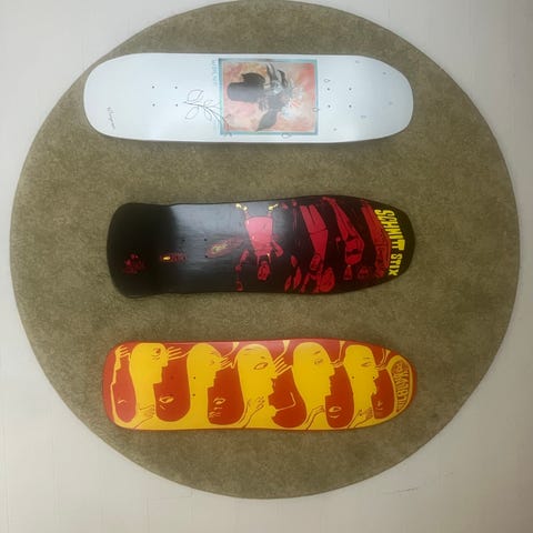 Selger deler av skateboard samlingen min som jeg har hengende på veggen.