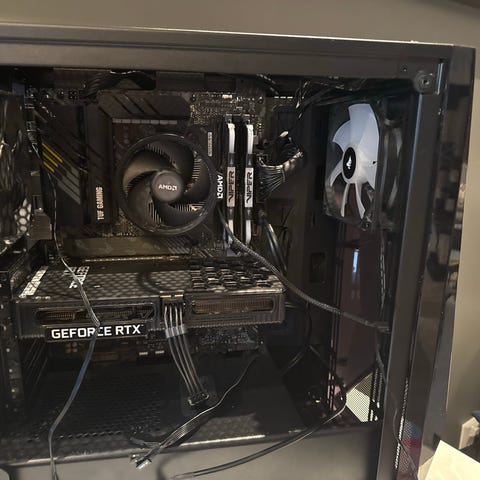 PC-en står derfor uten ram nå. Det på bildene er corsair vengeance rgb sticks uten funksjon, bare for utseende. Jeg har også installert ny ssd i ettertid; En western digital Black 770.
