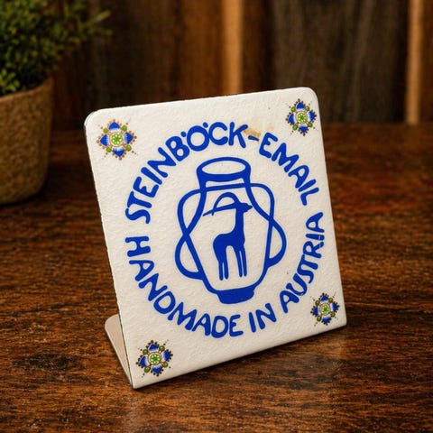 Lite reklameskilt i metall til salgs. Størrelse: 20 cm x 30 cm. Nytt/ikke brukt.