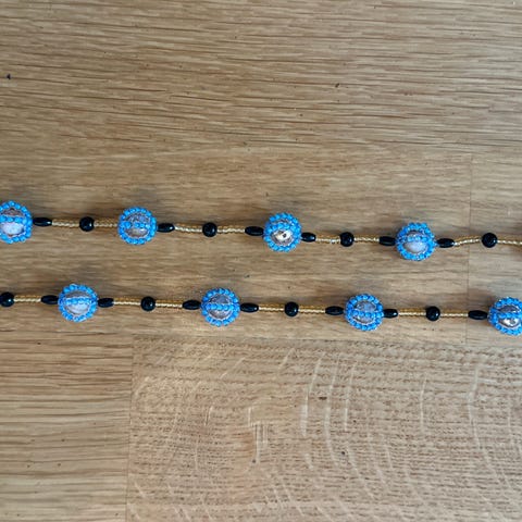 Brukt kun en gang, Perlene er ikke ekte men veldig bra kvalitet. Ser veldig elegant og classy ut