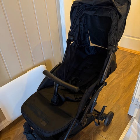 Med en hånd kan du legge sammen vognen og den kommer med en transportveske som gjør det enkelt å ta med inn på flyet.
