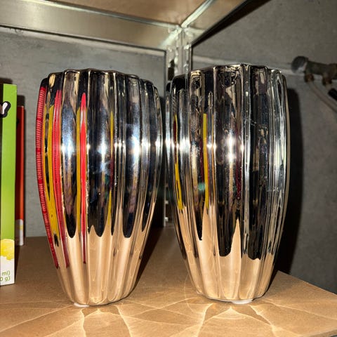 Selger gull, rund vase for 150 kr. Fremstår som ny!