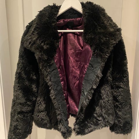 Vintage jakke, kjøpt brukt. Norskprodusert fra Bergen. Ull med nydelig grønt for. Ingen bruksmerker, nylig renset. Selges da den blir for lite brukt og fin pelskrage. Størrelsen ligger mellom 36 og 38. Røykfritt hjem. Sender gjerne.