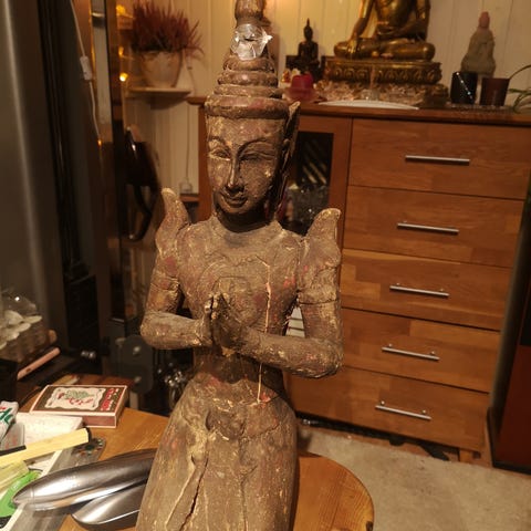 Stor flott svært gammel kinesisk statue i porselen. Mandarin, polychrome fra Qing Dynasty (1644 - 1912)